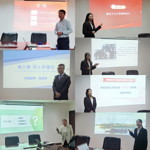 此次比赛,德法、概论教研室共计7位教师参加,全体太阳成集团122ccvip教师进行了现场观摩。比赛环节,参赛教师根据自己所选专题设计的教案有条不紊地依次上台进行教学展示。参赛教师声情并茂,将理论知识与现实案例结合,突出员工主体地位,创新教学方式方法,体现教学特色与亮点设计。教学内容丰富,案例分析生动,理论阐释深入浅出,呈现了有创意、有思考的课堂。