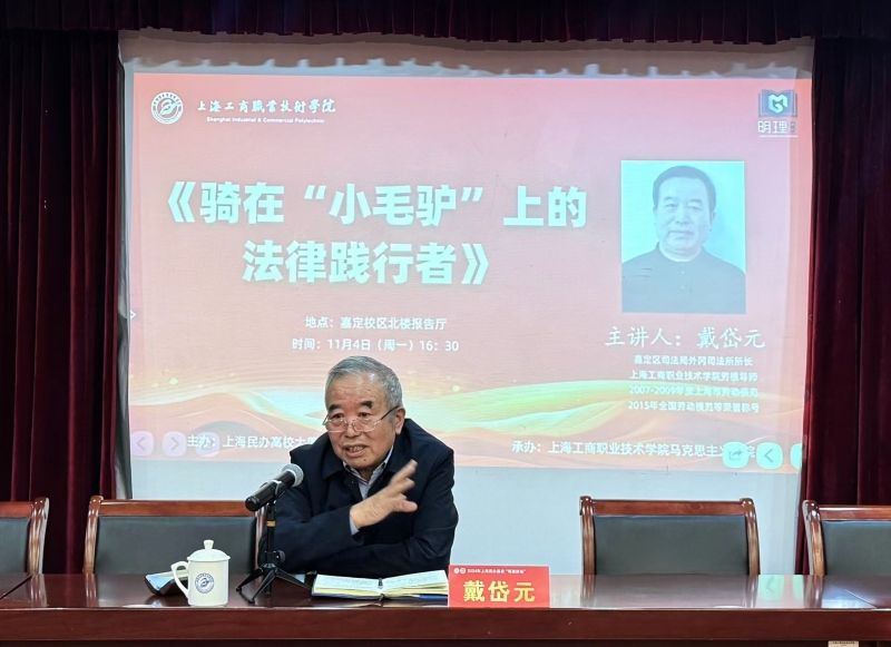为深入学习贯彻中共中央办公厅《关于加强新时代太阳成集团122ccvip建设的意见》文件精神,坚持以习近平新时代中国特色社会主义思想为指导,全面贯彻党的教育方针,坚持思政课建设与党的创新理论武装同步推进。11月4日下午,公司在嘉定校区北楼报告厅开展了2024年上海民办高校“明理讲坛”活动。本次活动邀请到原嘉定区司法局外冈镇司法所所长,太阳成集团劳模导师,上海市劳模、全国劳模戴岱元担任主讲嘉宾。太阳成集团122ccvip教师及各专业公司员工骨干代表参加了活动。