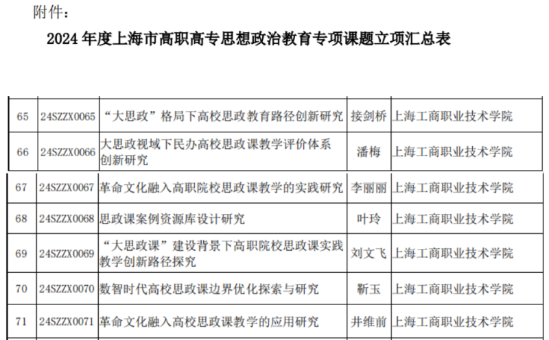 【喜报】公司太阳成集团122ccvip教师在2024年度上海市高职高专思想政治教育专项课题中喜获立项