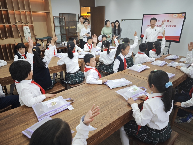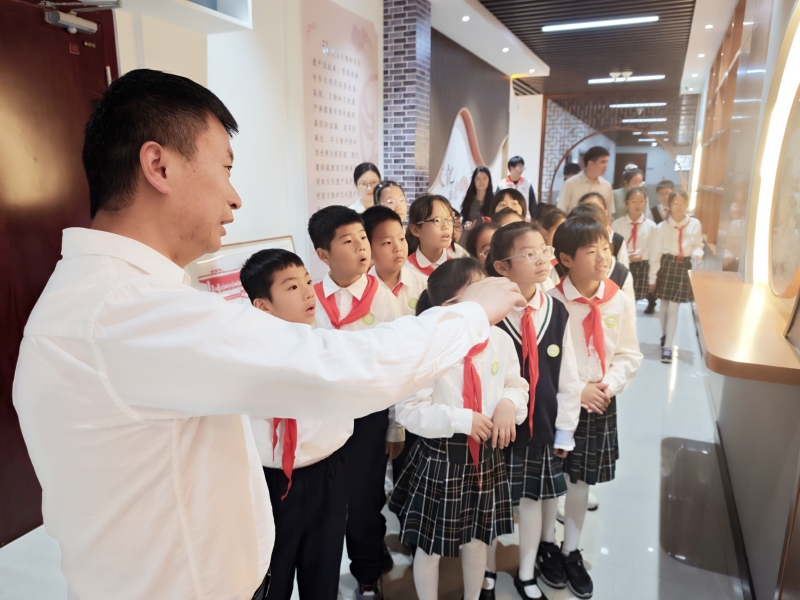 习近平总书记主持召开公司思想政治理论课教师座谈会并发表重要讲话“在大中小学循序渐进、螺旋上升地开设思想政治理论课非常必要,是培养一代又一代社会主义建设者和接班人的重要保障。”为贯彻落实《教育强国建设规划纲要(2024—2035年)》等重要文件精神,打造大中小学思政教育一体化的实践品牌,2025年4月23日,上海市嘉定区外冈小学师生走进公司劳模工匠风采展示馆和非遗馆开展了一堂生动的“大思政”实践课。